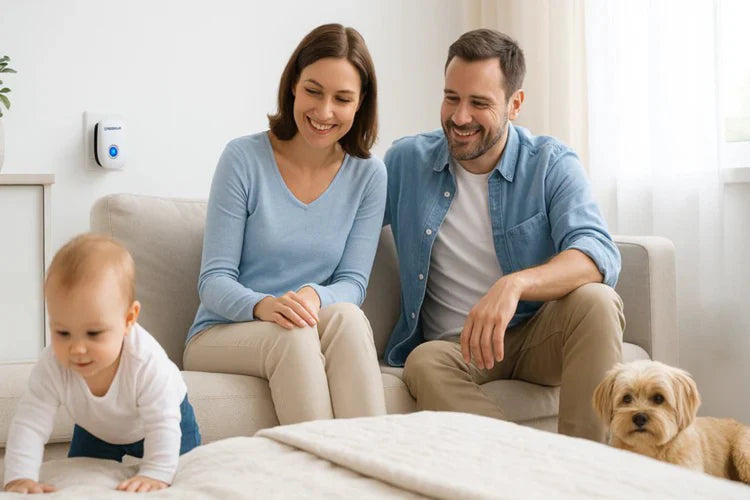 100 % sicher für Babys, Kinder, Haustiere und empfindliche Personen. BugShield schützt unauffällig, ohne Chemie oder störende Geräusche.